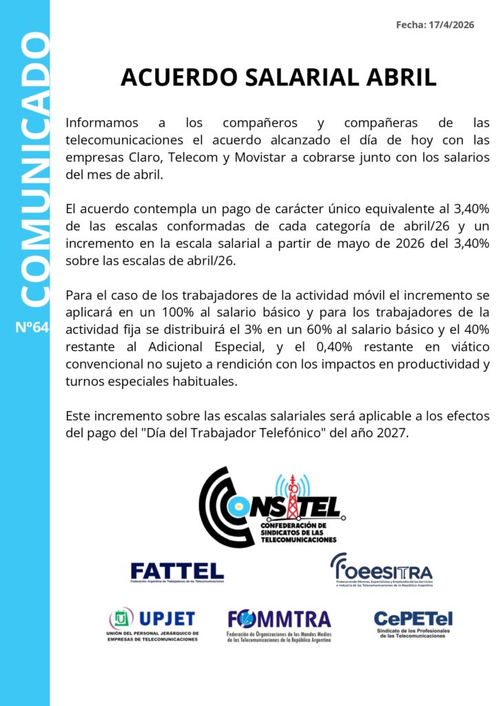 El Sindicato Luján de Obreros, Especialistas y Empleados de los Servicios e Industrias de las Telecomunicaciones de la